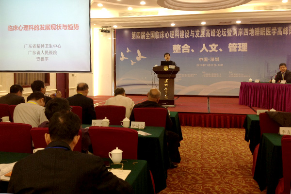 11月21-23日,我院精神卫生中心发起并举办的全国心理科建设与发展暨两岸四地睡眠医学高峰论坛第四届大会在深圳召开,来自全国二十多个省市和港澳台300余人参加了本次大会,国内、港台、欧美、印度等地近20余名专家分享了他们最新研究成果。大会以“整合、人文、管理”为主题,面对时代对精神卫生的广泛需求,以及医学模式从生物医学向生物-心理-社会模式转型的迫切需要,探讨不同学科的医生如何掌握人文、心理及精神卫生知识和技能;精神卫生专科从业人员如何抓住机遇提升自身的专业能力,主动融入主流医学;精神卫生学科如何提升管理水平,满足学科迅速发展的需要。