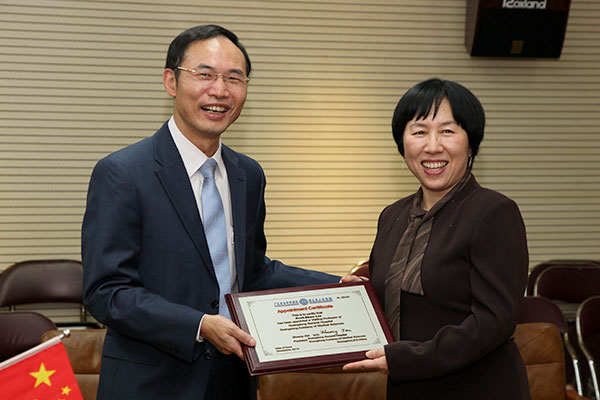 庄建院长(左)为林梢颁发客座教授聘书