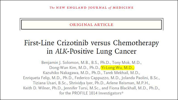 研究结果发表于《新英格兰医学》,吴一龙副院长位列第四作者