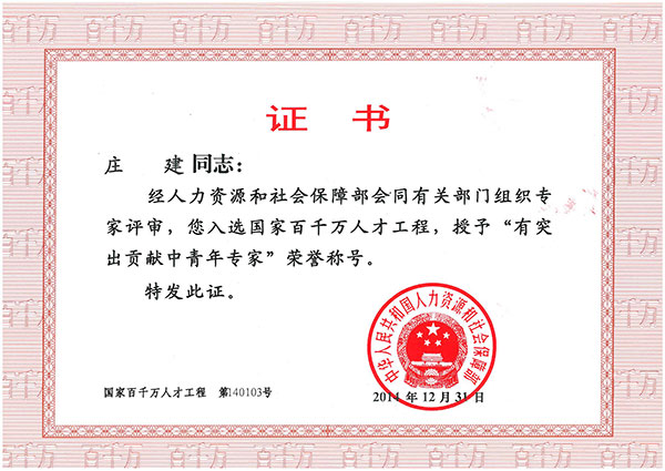 日前传来消息,经国家人力资源和社会保障部会同有关部门组织专家评审,庄建院长入选国家百千万人才工程,同时被授予“有突出贡献中青年专家”荣誉称号,是我院首位入选“工程”国家级人选的专家,实现了该人才项目零的突破。