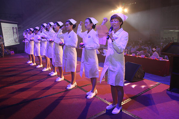 紧接着是护士代表发言:骨科护士代表张瑞英讲述从一个专科护士如何通过自身的努力带动专科护理的发展;手术室男护士徐朋分享了他开始受手术医生的抵触到现在被接受和肯定的经历;心外复苏室的专科护士凌云汇报了支援新疆医喀什医院的情况。三位发言人从不同的侧面,用朴实的语言、丰富的素材、感人的事例表达了对护理工作的热爱,抒发了对护理事业的深厚情谊。