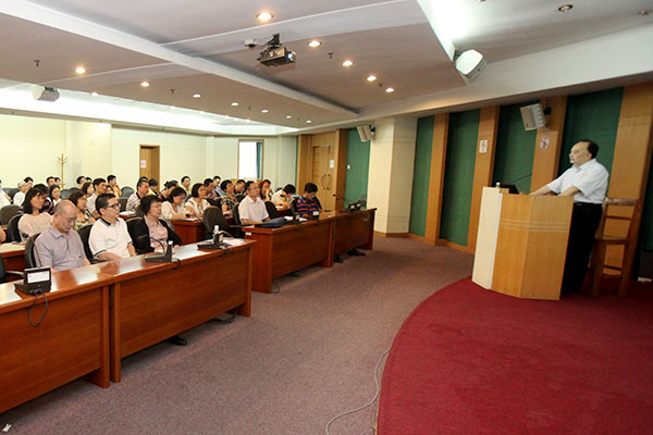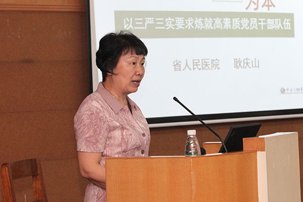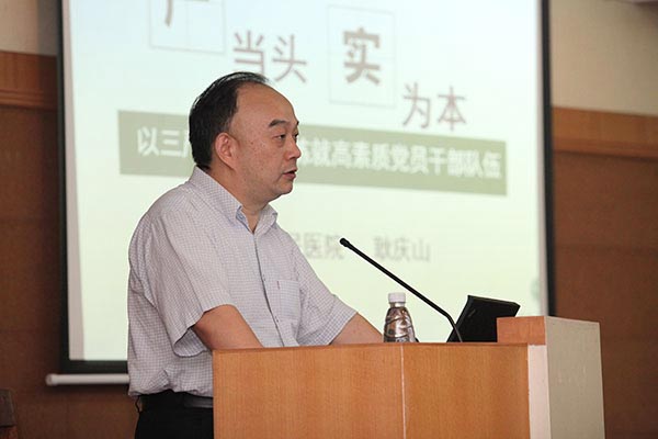 院党委书记耿庆山同志作了题为《“严”当头,“实”为本,以三严三实要求炼就高素质党员干部队伍》的党课。党课主体分为领会“三严三实”的丰富内涵和重大意义、认清“不严不实”的主要表现及严重危害和提升“三严三实”的思想自觉和行动自觉三部分。