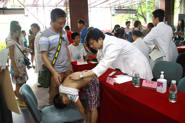 前来求诊的患者当中,大部分是在校学生。家长们都想趁着暑假的时间带孩子来我院治疗脊柱侧凸,以免耽误学业。虽然并不是每一位患者都需要进行住院手术治疗,但并不代表他们的病情就可以忽视。大部分的患者还需要继续随访观察,甚至进行支具治疗。对于这170余位前来的患者,骨科专家细心为他们安排了个体化的治疗计划,并教会了患者自我检查的方法。实际上,患者的自我防治意识对于脊柱侧凸的治疗是关键,多数的侧凸可以通过自我检查而发现。