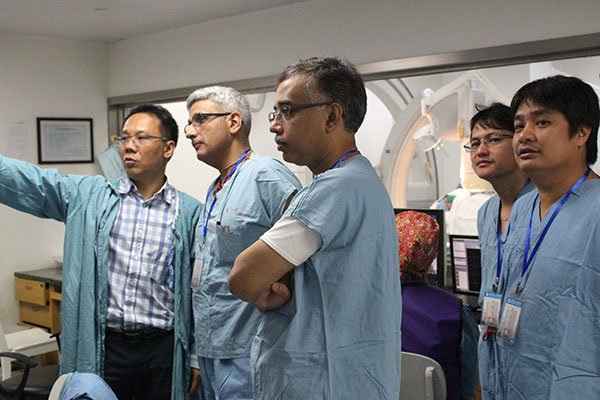 6月上旬,我院心内科成功举办了第8期“周围血管介入治疗培训精品班”。培训班围绕心血管与周围血管复杂的相关关系,聚焦周围血管介入治疗的整体观诊治,以生动的病例讨论以及精彩的现场手术演示为培训形式,面向印度和泰国的医院,以及省内兄弟单位。