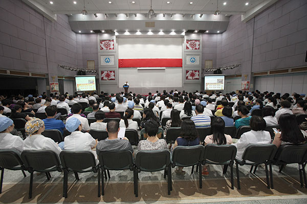 继6月3日启动“三严三实”专题教育后,院党委于8月4日启动2015年纪律教育学习月活动,医院党委书记耿庆山授课作动员,全体医院领导班子出席,400多名党员、干部参加了动员仪式。