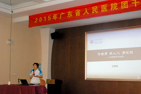 吕惠敏主任则以《修自身·聚人心·勇实践》为题,以亲身经历分享了一名老团干的感悟。回顾起10年前在医院团委的工作,她记忆犹新,回忆起策划的活动,不乏骄傲与自豪。吕主任分享到,一次次成功的活动,关键点在于“用心策划+肯于付出”,评价一次活动的成功,在于三看:“看背景,是否有创意;看节目,是否质量高;看效果,是否久难忘”。她指出,团委拥有一支热爱团工作的团干队伍,团干要善于团结青年、依靠青年、敢于创新。