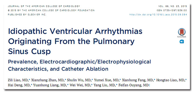 近日,我院心研所吴书林等人的心律失常团队的临床研究成果——《起源于肺动脉窦的特发性室性心律失常的发生率、心电图/电生理特点及经导管消融》,首登心血管专业最顶尖杂志 - 美国心脏病学院杂志《Journal of the American College of Cardiology (JACC)》(中科院一区,IF=16.5)。该研究首次提出“倒U”方法消融肺动脉窦起源的特发性室性心律失常,为起源于右室流出道-肺动脉联接处的室性心律失常的经导管消融提供了指导,是该团队电生理介入术系列研究成果的又一佳绩。