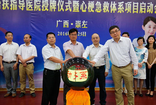 5月25日,徐力新副院长一行抵达广西,受到了广西崇左市人民医院吴晓秋党委书记、院长等领导的热情接待。当天下午,我院一行不辞路途辛苦,立即举行了对口帮扶指导医院授牌仪式和心梗急救体系项目的启动仪式