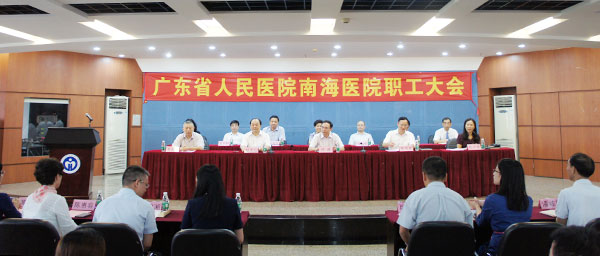 近日,广东省人民医院南海医院职工大会在医院门诊大会议室举行。广东省人民医院庄建院长、耿庆山书记等全体班子成员及南海区政府朱伟新政务委员、区卫计局孔小燕局长、桂城街道吴强华党委委员和医院全体领导班子出席大会。