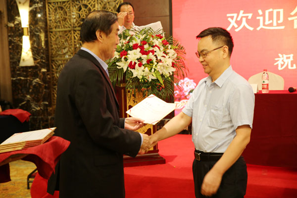 国家中医药管理局医政司原司长、中国民族医药学会会长许志仁为王昌俊颁发聘书