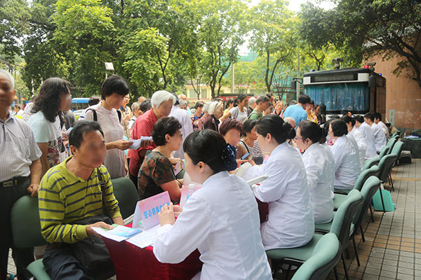 义诊过程中,我们发现一些指标异常的人并给予了及时的处理,如一位阿姨的空腹血糖非常高(33.3mmol/L),已超过危机值,邝护士长通过仔细询问阿姨,得知她已有糖尿病10多年,但从未规律治疗和复诊,近几年道听途说自行买消渴丸等药治疗。邝护长一边向阿姨宣教糖尿病的相关知识,一边带其到分泌专科门诊找医生诊治,然后到急诊静脉使用胰岛素治疗和密切监控血糖,令阿姨很感动。骨密度检查也发现很多缺钙及骨质疏松的市民,已指导他们到相应专科就诊。