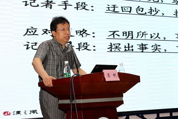 报告中,栾帆老师用其低沉、富有磁性的男中音,引用大量详实的央视新闻影像历史资料,多维度、生动形象地从站在战略的高度看媒体,如何变被动为主动的媒体策略,危机中的媒体与公众策略,危机传播的处理原则等方面阐述了危机应对的原则及方法。栾老师的报告有许多独特的、一针见血的见解 ,如“生于媒体、死于媒体”,“媒体追求的是眼球关注”,“态度加行动是最好的应对”,“突发事件第一需要的是我们真诚面对的态度,而不是结论的真相”,“最高明的危机处理就是防患于未然”---- 与会者听得如痴如醉,仿佛身临其境。