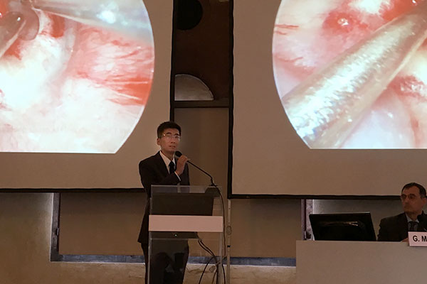 崔勇主任医师分别在口头发言和视频展示中介绍了助手辅助的双手操作经耳道手术操作,这也是该项技术国际范围里首次报道。该方法成功的克服了传统耳内镜手术操作单手操作的弊端。