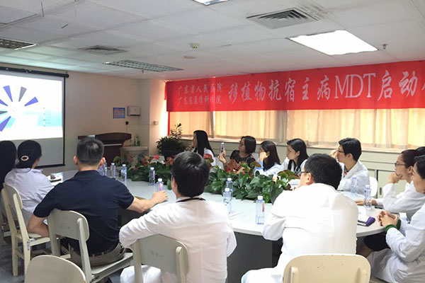 血液科移植物抗宿主病(GVHD)MDT启动会于6月15日下午在血液科会议室举行。参加的科室包括血液科、呼吸、消化、内分泌、眼科、生殖、心理、监护室、影像学等多名专家。医务处姜立副处长参会。