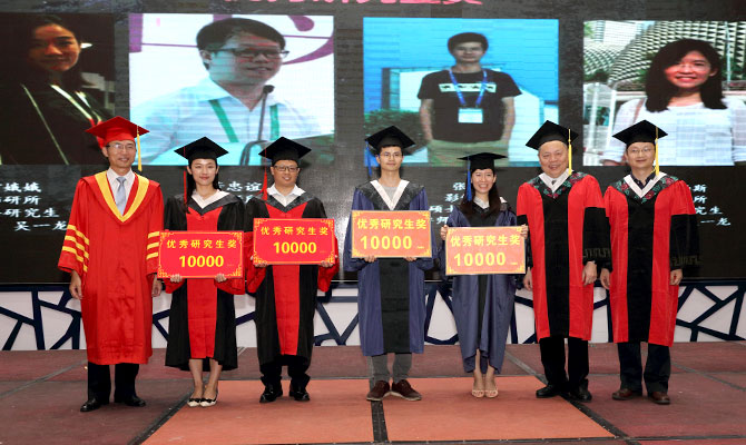 庄建院长、耿庆山书记、吴书林副院长分别为获得2017届“优秀研究生奖”、“优秀研究生奖鼓励奖”、“优秀研究生骨干奖” 获得者颁发荣誉证书。