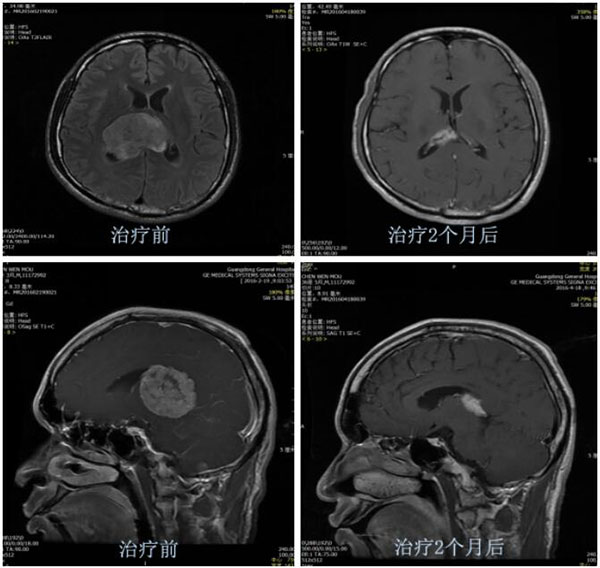 典型病例:肺癌脑转移,病灶虽然较大,但位于重要功能区(丘脑),不宜选择手术切除,