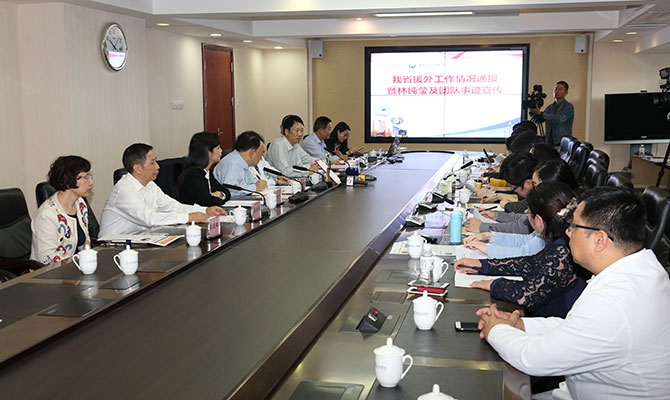 11月29日,由省卫计委主办的“2017年最美援外医生”林纯莹及团队事迹媒体通气会在我院办公楼906举办。会议邀请了20多家省市新闻媒体单位参加,出席会议的有省卫计委宣传处处长刘占峰、对外交流合作处处长周紫霄、我院党委书记耿庆山、纪委书记严晋、院办主任杨小红、党办主任吕惠敏和援外专家。