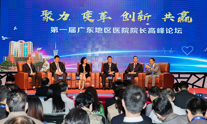 人民医院联盟成立后当即举办以“聚力、变革、创新、共赢”为主题的第一届广东地区医院院长高峰论坛,共同就医院协同发展进行探讨。