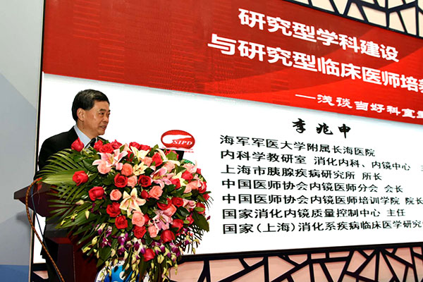 李兆申院士从事消化病基础与临床研究30余年,开展了消化内镜转化和胰腺病的创新研究,建立了我国消化内镜质控标准和专业人才培训体系,为我国消化内镜技术普及和快速发展做出重要贡献。历时15年,他带领长海医院消化内科登上一个又一个新的台阶,学科建设和人才培养取得系列的丰硕成果。在《研究型学科建设与研究型临床医师培养-浅谈当好科室主任的体会》主题演讲报告中,他以长海医院消化内科发展历程为主线,结合科室学科建设和人才培养的体会,从如何搭建科研平台,正确定位学科水平和方向,以临床需求驱动型研究为主攻方向,开展转化医学研究;人尽其才,鼓励个性发展,重视专长培养,全力支持年轻人,培养亚学科临床和技术专家,打造梯队合理、年富力强、方向明确、充满活力的学术队伍;建设科室文化,营造团结和谐氛围;根据国家需求及时调整学科方向,实现转型发展,确定近期重点研究方向等方面层层递进、娓娓道来,最后他对专家和科主任的角色定位与转换进行了解读,强调作为一个科主任,要大公无私乐于奉献甘为人梯,能够审时度势把握学科水平和方向,建好学科带头人和学术骨干两个梯队,把好临床、科研、学术、基金、成果关口。