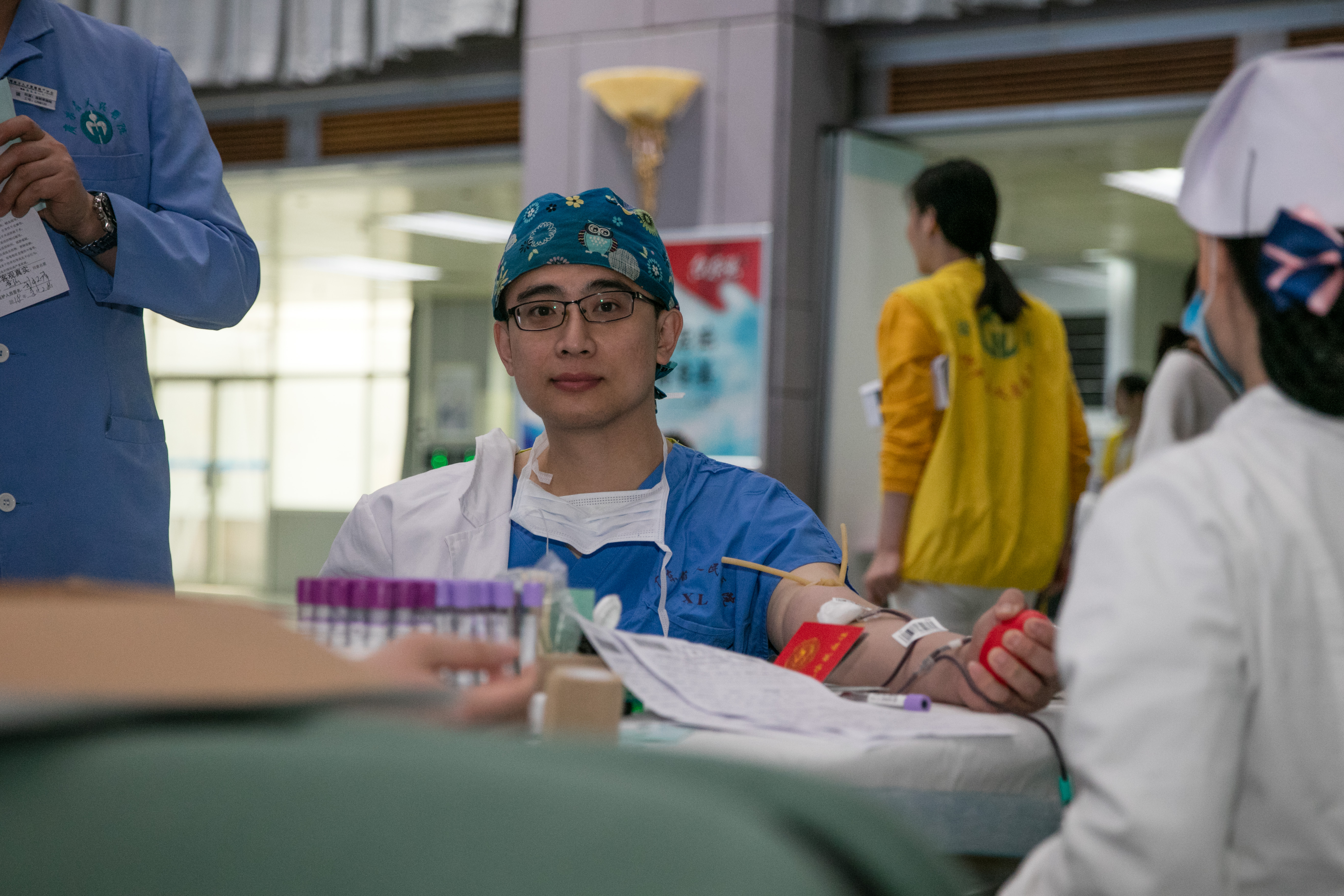 一位从旁边经过的带着孙子的阿婆看到这样的场景也动容的说:“哇,连医生护士都来献血,真是太了不起了!”一股股殷红的血液流入了采血袋中,就像源源不断的生命之源,作为一名医务工作者,他们比普通的老百姓更了解血液对患者的珍贵,也真正践行着医患“血脉相连”的高贵的职业精神。