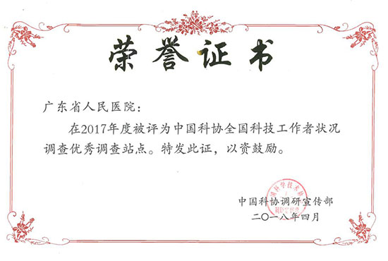 我院站点喜获“三连冠”。继2015年、2016年连续获“优秀站点”和“优秀信息员”表彰后,此次经中国科协调研宣传部会同中国科协创新战略研究院组织的年度综合考核评级,我院在全国506个调查站点中脱颖而出,再获“优秀站点”、“优秀信息员”和“优秀调查员”的集体和个人表彰,广东省仅4家单位获此殊荣。