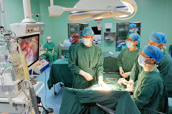 黄焕雷主任带领手术团队为一名30多岁的维族男同胞实施了一台全腔镜下的微创二尖瓣成形手术。由于患者病变复杂,反流程度重,手术中植入了5根人工腱索加人工瓣环,手术效果完美,术中心脏彩超检查二尖瓣几乎没有反流。在我院重症医护人员的努力和对方的协助下,术后呼吸机也只辅助了6小时,ICU监护40小时就转入了普通病房。据悉,这是南疆地区首例全腔镜下的微创二尖瓣成形术。
