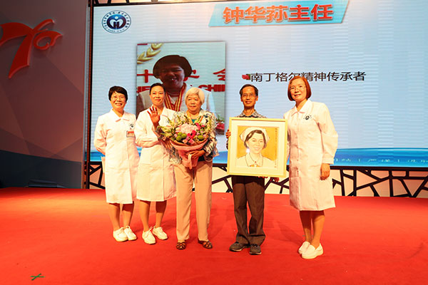 本次活动的亮点之一,当数钟华荪主任的事迹介绍,一张张老照片、一段段丰富的经历,配上护理部李华科长具有激情又富有感染力的讲解,将全场观众带进了钟华荪主任从事护理42年的峥嵘岁月,台下观众时而凝神倾听,时而感动落泪,大家都被钟华荪主任对护理事业的热爱,执着,追求和奉献精神深深地打动了。