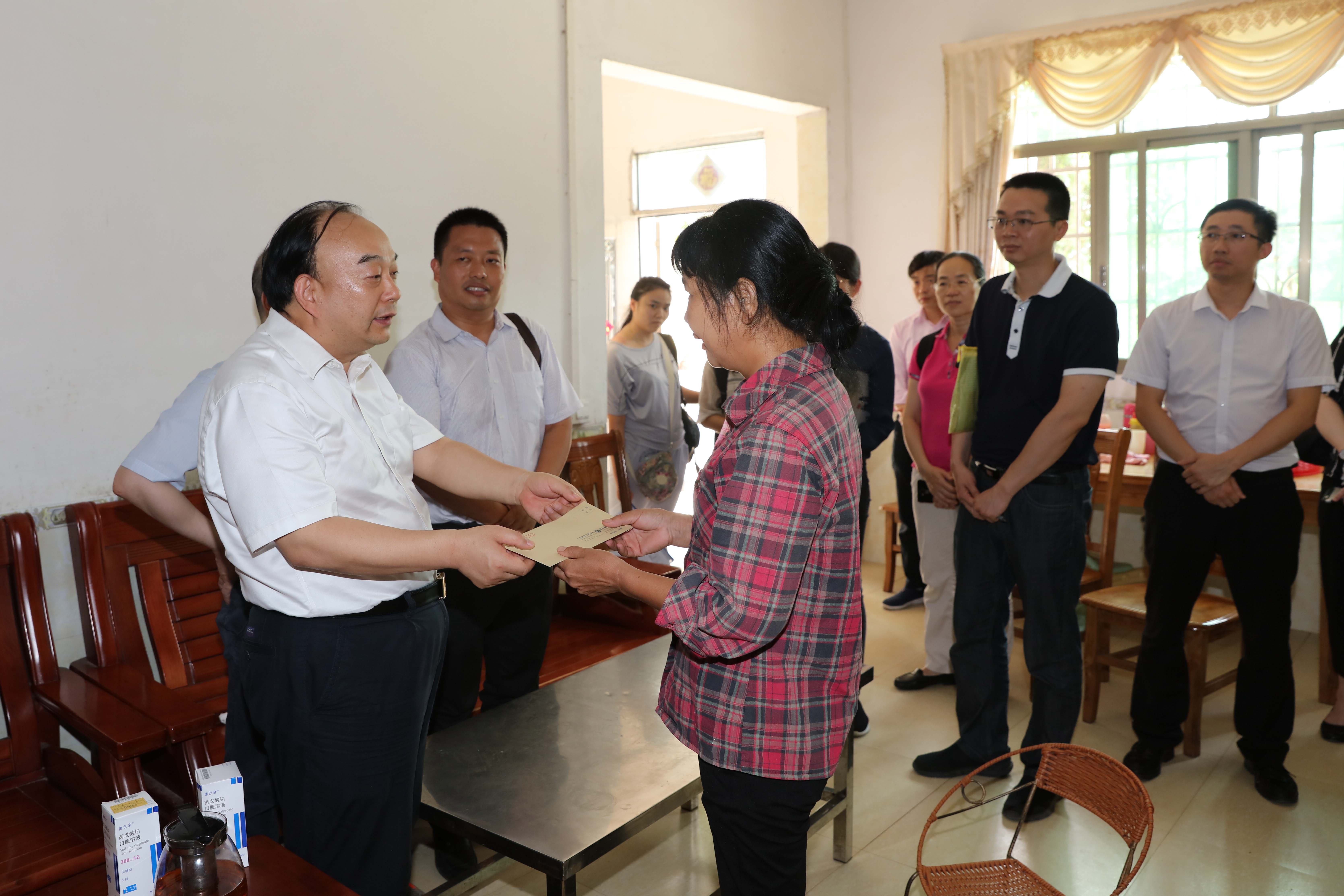 义诊结束后,中午2点烈日当下,一行人又专程到江古山村慰问了10户结对帮扶贫困户,并到林群花、林保胜两户贫困户家了解实际情况。“家里有多少人?”“现在家里最大的支出是什么?”“认为最大的困难在哪里?”“希望我们可以提供什么样的帮扶措施?”一句句温暖体贴的问候,贫困户感动又感谢。“再过一天,就是我们广东的扶贫济困日;再过两天,就是我们党的生日。希望你们在党和政府的关心下,日子越过越好,在驻村工作队的帮扶下,早日踏上脱贫致富之路。”耿庆山书记语重心长地跟贫困户交待要积极和工作队沟通共同面对困难解决困难。今年5月底,按照省卫计委的统一部署和安排,我院开始结对帮扶133户精准扶贫户中的10户贫困家庭。他要求驻村工作队与贫困家庭深入沟通,以提出更有效解决家庭困难的措施,实打实打好脱贫攻坚战。