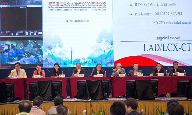 逆向介入治疗慢性完全闭塞(CTO)因为其病变复杂,手术操作难度大,成功率低等特点,被称为冠脉介入治疗的堡垒。6月23-24日,为进一步推广和提高CTO临床经验,融合东西方CTO介入先进理念,提高国内CTO逆向介入水平,造福患者,由广东省医师协会心脏重症医师分会、广东省介入性心脏病学会主办,广东省人民医院承办的第三届逆向介入治疗CTO高峰论坛(RPR-CTO Summit 2018)在广州召开。本次大会由复旦大学附属中山医院葛均波院士、我院陈纪言教授担任主席。我院张斌教授、复旦大学附属中山医院葛雷教授、沈阳军区总医院荆全民教授、第四军医大学西京医院李成祥教授担任大会执行主席。广东省医师协会林曙光会长主持本次大会开幕式。作为承办单位,我院2016年搭建了逆向介入治疗CTO高峰论坛这一平台,专门针对逆向介入治疗进行探讨。