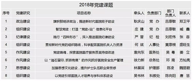 近日出台的《广东省加强党的基层组织建设三年行动计划(2018—2020年)》规划了2018至2020年每年的主题和目标,其中2018年以“规范化建设”为主题,重点加强各领域基层党组织规范化制度建设。广东省人民医院党建研究室的成立,正是广东省人民医院全面贯彻落实习近平总书记重要讲话精神和党的十九大精神,以及党委领导下的院长负责制部署要求,提高政治站位,锤炼政治能力,体现着坚持和加强党的全面领导政治原则。