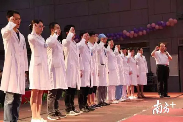 医务人员重温入党誓词。