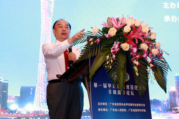 当今,流行病学调查显示甲状腺癌已成为发病率增高最快的实体癌。为加强广东省与全国甲状腺学界以及广东省内各地区间的学术联系和交流,深度展示甲状腺领域的最新进展,特别是积极推动我省甲状腺癌的规范化治疗,由广东省医师协会甲状腺专业医师分会主办、我院普通外科承办的“第一届甲状腺癌规范化诊疗羊城高峰论坛” ,于8月31日-9月1日在广州隆重召开,全国各地的逾300位甲状腺相关专业医生参加会议。