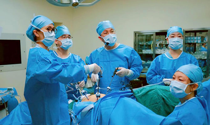 在手术演示环节,我院妇科刘木彪教授、陈建国教授示范了不同类型的腹腔镜手术,学员们通过在线转播的方式观摩了手术演示,气氛热烈。在学术讲座环节,我院妇科专家陈建国教授带来了“腔镜下大子宫切除手术技巧与策略”,展示了其丰富的手术经验。叶海燕教授发表了“非上皮性卵巢肿瘤的诊治进展”的专题讲座,为大家带来了最新的指南解读及医学资讯。刘木彪主任以极其简单的话语、生动的比喻,向台下听众重新阐述了盆底组织的结构和功能,为选择盆底重建的手术方式提供了简单而清晰的思路。而李志刚教授则通过与大家分享SGO与ASCO关于腹腔镜宫颈癌根治术的摘要,让学员们对腹腔镜宫颈癌根治术进行更深层次的了解及思索。