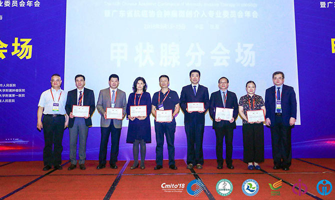 9月14日,中国抗癌协会肿瘤微创治疗专业委员会甲状腺分会在珠海国际会展中心举行换届暨学术年会。新一届委员会由80名成员组成,其中主任委员1名、侯任主任委员1名、副主任委员7名、常委15名、委员54名、秘书长和秘书各1名。我院普通外科吴泽宇教授当选新一届中国抗癌协会肿瘤微创治疗专业委员会甲状腺分会主任委员,中山大学附属肿瘤医院杨安奎教授当选侯任主任委员,四川大学华西医院李志辉教授、解放军总医院罗渝昆教授、上海交通大学瑞金医院费健教授、贵州医科大学第二附属医院第二附属医院赵代伟教授、山东大学附属千佛山医院付荣湛教授、大连医科大学附属第一医院车颖教授和福建省第二人民医院王鸿程教授当选副主任委员。我院普通外科王三明教授和彭静君护长分别当选秘书长和秘书。
