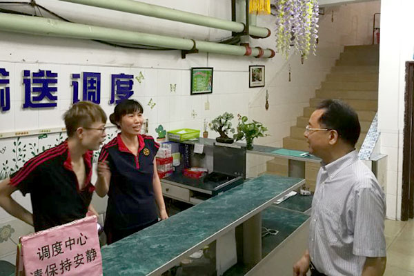 余院长来到后勤的消防中心、输送调度中心和机电维修中心,与后勤值班人员一一握手寒暄。在值班人员介绍完值班情况后,余院长感谢大家为节日期间医院各方面工作的正常运行付出的艰辛,并祝大家中秋节日快乐!