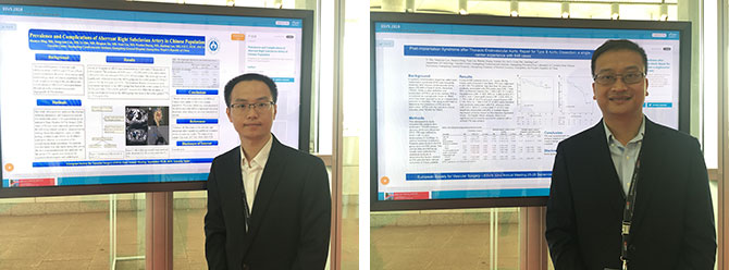 罗建方主任团队受邀进行壁报展示的3篇优秀论文分别是:丁焕宇医生的论文摘要《Prevalence and Complications of Aberrant Right Subclavian Artery in Chinese Population》、《Outcomes of Innominate Artery Chimney Technique for Zone 0 Thoracic Aortic Diseases》以及朱屹、罗淞元医生的论文摘要《Post-implantation Syndrome after Thoracic Endovascular Aortic Repair for Type B Aortic Dissection: a single-center experience with 646 cases》。我院血管病诊疗中心在ESVS亮相,是继在美国心脏学院年会(ACC)、美国心脏病学会(AHA)、美国介入性心脏病年会(TCT)、德国血管腔内介入治疗大会(LINC)等最具影响力的国际学术大会进行的又一突破。