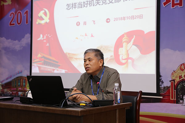 省水利厅直属机关党委专职副书记肖飞作《怎样做好党支部书记》专题授课。他用党务干部身边的各种例子,旁征博引的强调“牢记党员身份,牢记第一责任,做好党建工作。”他指出,党支部工作抓三点:有亮点、无盲点、及时化解风险点。教导党务干部要“说好自己该说的话、做好自己该做的事、管好自己该管的人、用好自己该用的权。”
