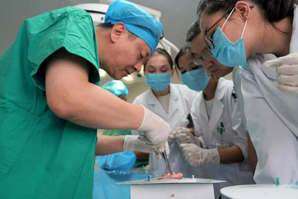 心外科副主任范瑞新主任此次以志愿者身份援疆,就是来开展模拟手术室成立后的第一次模拟手术培训。据悉,此次为南疆首个心脏外科模拟手术培训。范主任带领学员们在模拟装置及真实的动物心脏上仿真模拟训练了二尖瓣置换手术及 Bentall手术,还带领4名规培学员练习了心房组织的切割与缝合操作。