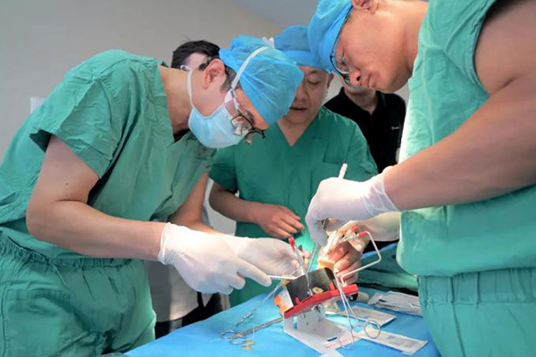 心脏大血管外科手术涉及全身所有的重要脏器,对手术时间有严 格的限制,对术者操作精确度及助手配合的默契程度有极高的要求。国外及内地大的心脏中心均设有动物模拟手术室,但喀什地区尚未开展此类培训项目。在喀地一院党委、规培中心、心脏大血管外科及供应室的全力配合下,经过两个月的器械购置准备工作,我院援疆专家于长江筹建了喀地一院“心脏及大血管外科模拟手术室”。