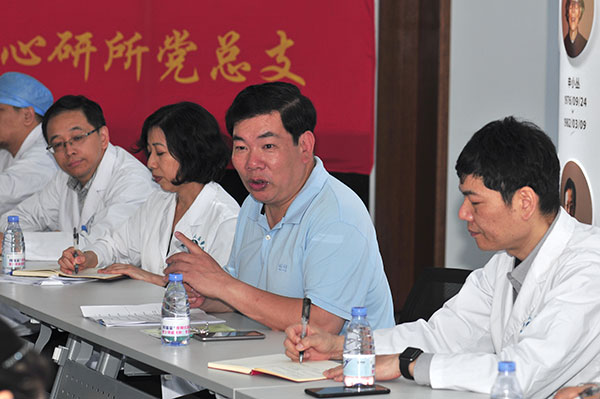何斌同志强调,现代医院管理制度下,我们要加强基层党组织的建设,那就意味着党务工作者承担的责任重、任务大。今后党务工作与业务工作会越来越紧密结合,作为党务工作者更要善于在日常工作中发现问题,把“三严三实”的各项要求贯穿到修身做人和为民服务、干事创业的全过程。在当前的创建模范机关活动中,党员干部忠诚干净担当的示范引领作用更加突出,扎实推进心研所各项工作落实落地见效。