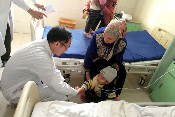 3岁的伊力亚斯是一个法洛四联症患儿,因为病情较重,原计划转院至乌鲁木齐手术治疗。听说广东省人民医院团队要来喀什的消息后,提前来到喀地一院预约手术。小男孩很活泼开朗,看到查房的叔叔们就会伸出小手跟所有医生握手,但是严重的缺氧、紫绀迫使他无法长时间站立,每一次握手后他就得蹲在地上歇一会,然后再站起来进行下一次握手。精心的手术后,小家伙的脸当天已经是红扑扑的,原先的病态一去无踪。第二天已经精力十足,脸上带着笑,虽然还不会说普通语,但他的小手伸在半空不停的跟人握手的情景却告诉我们,他的病已经完全好啦!
