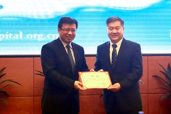 刘瑞华副会长为主任委员李智教授(左)颁发聘书