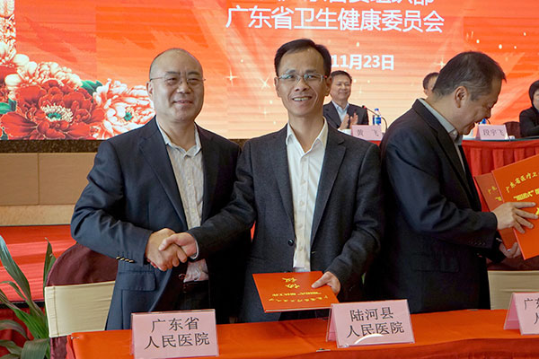 在11月23日广东省医疗卫生人才“组团式”帮扶工作启动会上,省卫生健康委主任段宇飞作了启动工作的部署讲话。我院余学清院长、徐力新副院长出席会议并签订了帮扶工作协议。