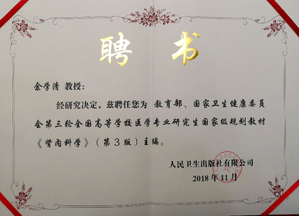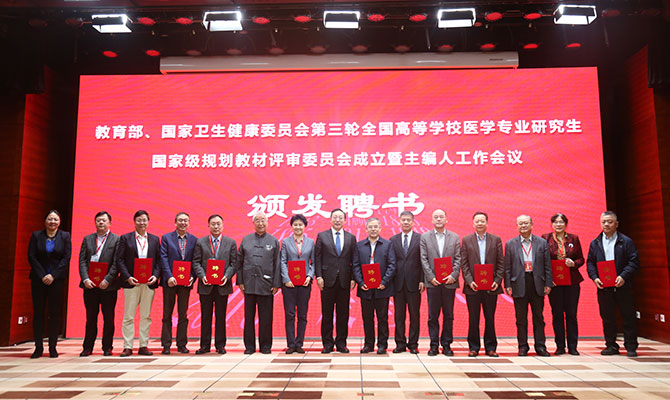 日前,在北京召开的教育部、国家卫生健康委员会第三轮全国高等学校医学专业研究生国家级规划教材评审委员会成立暨主编人工作会议上,我院院长余学清教授受聘为全国研究生教材评审委员会常委和《肾脏病学》主编,前任院长庄建教授受聘为《胸心血管外科学》副主编。这是继今年9月,两位学术带头人分别受聘为全国住培规划教材主编、副主编后,双双再次担任国家级教材的主编和副主编。目前,余学清教授还担任了全国统编教材八年制《内科学》副主编和《内科学》五年制编委及泌尿系统分编负责人。