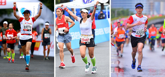 省医医师跑者同进担任重要任务。张国林,丘伟中等四个参加医师跑者,肺功能室吴欣医生代表官方配速员,他们在途中救治有需要的跑者。
