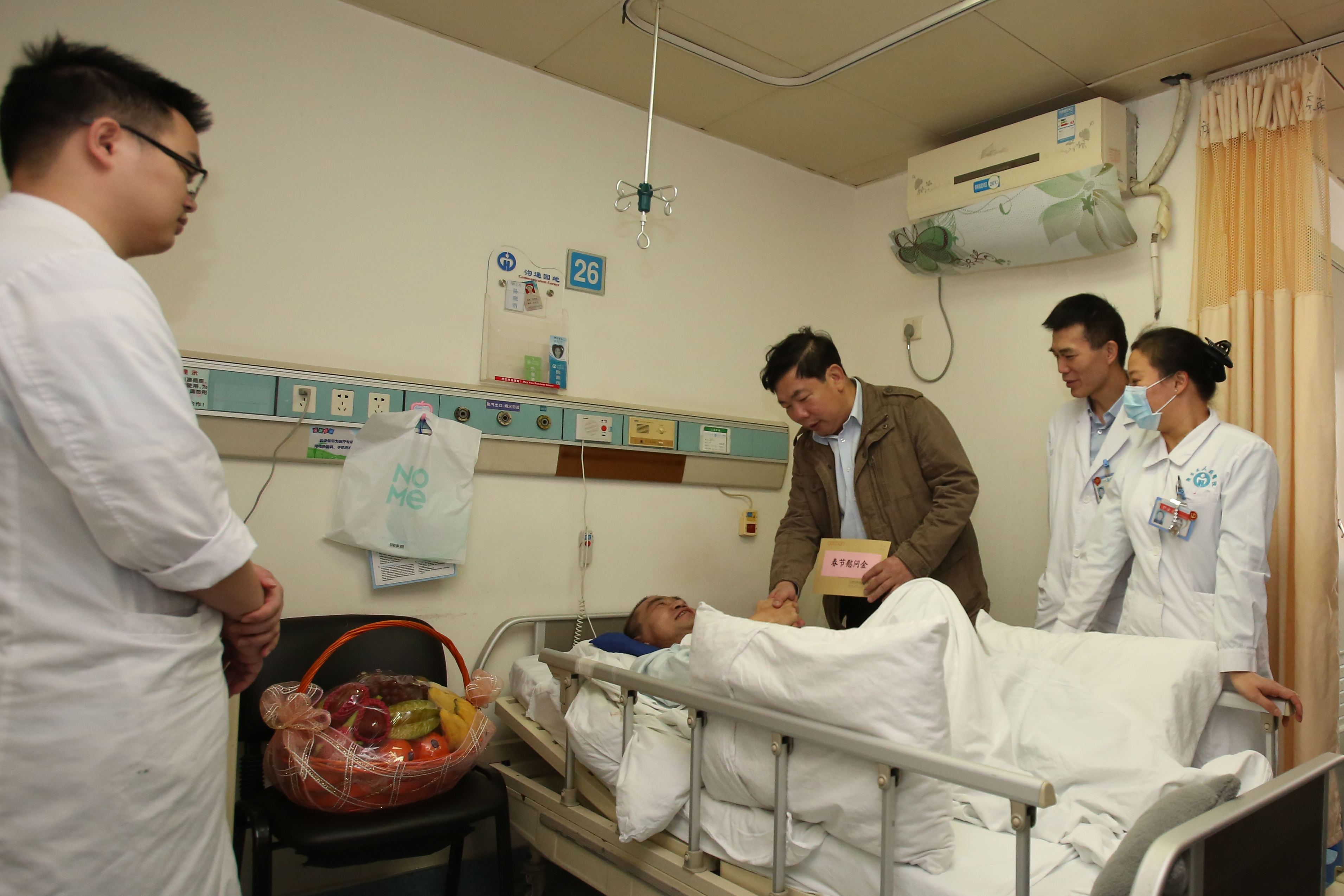 2月1日上午,院党委何斌副书记带队来到困难职工所在科室和住院床边进行慰问。何斌副书记代表工会为困难职工送上春节慰问金和果篮,关切向职工了解目前的身体状况和治疗进展,嘱咐大家一定要保重身体,树立阳光心态,战胜病魔,在身体恢复良好的前提下再回院上班,家里有特殊困难要及时向工会反映,工会永远都是职工的“娘家人”,医院是职工坚强的后盾。