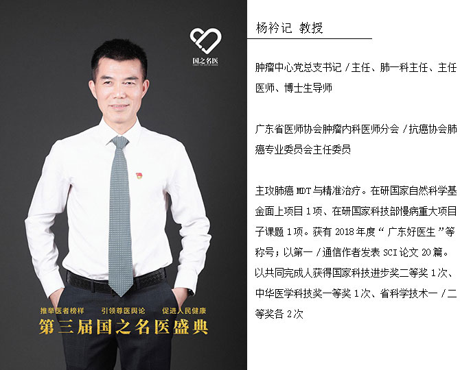 由人民日报社指导,人民网、健康时报联合主办,人民日报社及其社属媒体共同支持的第三届“国之名医“盛典于2019年8月9日在京隆重举行。大会上公布并表彰了所有获奖者,其中我院三位肿瘤领域专家获得荣誉——肿瘤中心党总支书记杨衿记教授荣获“国之名医 • 优秀风范”奖,广东省肺癌研究所副所长周清教授和乳腺二科主任王坤教授分别获得“青年新锐”奖。