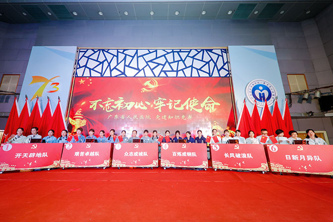 党建知识竞赛是我院主题教育的一项特色活动,本次竞赛的参赛者来自各支部比赛中角逐而出的优胜者。他们分别是省精卫中心党支部和老研所党总支组成的“开天辟地”队、心研所党总支和综合临床党总支组成的“艰苦卓越”队、大内科党总支和肿瘤中心党总支组成的“众志成城”队、大外科党总支和机关党总支组成的“百炼成钢”队、平洲分院党支部和惠福分院党总支组成的“长风破浪”队、离退休党总支和药学技诊党总支组成的“日新月异”队。