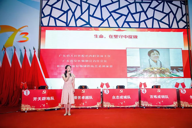 微党课比赛的优胜者曹玲玲带来了演讲《生命,在坚守中绽放》,讲述了我院心内科资深主任、我国心脏康复领域的拓荒者孙家珍主任的感人经历,倡议医院职工以赤诚之心去担负起人民健康的重担,用奋斗之姿去迎接一个又一个的挑战。