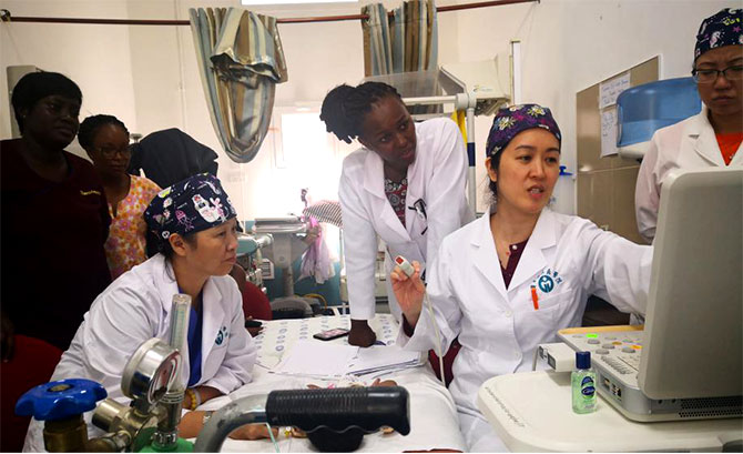 由于库玛西教学医院缺乏心脏超声设备,医生的诊断都是靠听心脏杂音来判断,医疗队此行解决了他们的燃眉之急。从门诊、病房到PICU,大批患儿经过新的超声设备检查后,明确了诊断和治疗方向。前来检查的患者90%都是先天性心脏病,以室间隔缺损、房间隔缺损为主,部分为复杂性先天性心脏病,这些在中国可以通过手术治愈的疾病,在加纳却无法得到治疗。